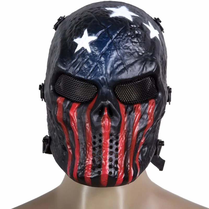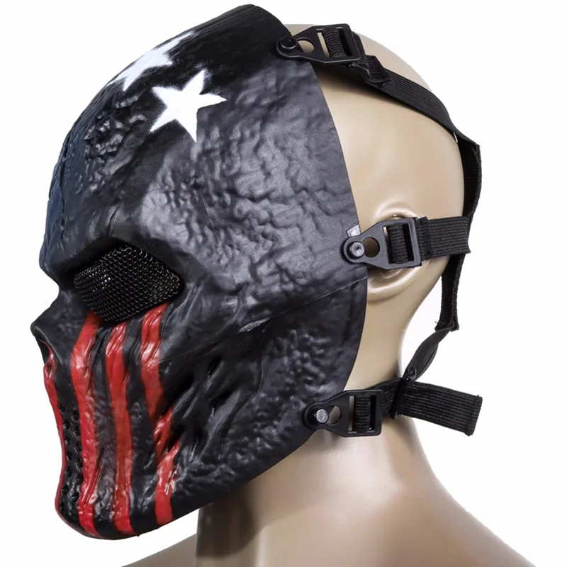 Outdoor Party Mask Skull Full Face Mask Hunting Games Outdoor Metal Mesh Eye Shield Costume for Hal